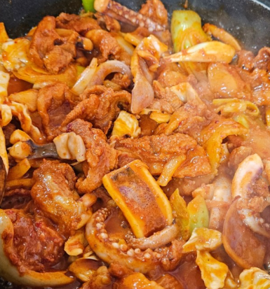- 강원도산 더덕 + 국내산 돼지고기 + 오징어