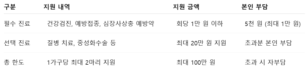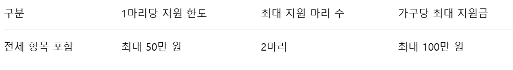 - 제출서류: 주민등록등본, 소득증명서, 동물등록 확인서 등